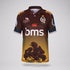 Distinctive black-over-blue sleeve piping references the identifying colour patches worn by Queensland infantry battalions in World War One, including the 9th, 25th, 41st and 49th battalions. The Rising Sun badge takes precedence over the Queensland logo, symbolising service, remembrance, and the unbreakable bond between today's players and the Reds who heeded the nation's call.