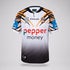 Built to Rise. The Wests Tigers 2026 Mens Away Jersey symbolises passion, commitment and performance, featuring a dynamic Tiger fur inspired design in white with striking Tiger striped chevron detailing. Showcasing Wests Tigers new direction...from endangered to dangerous.